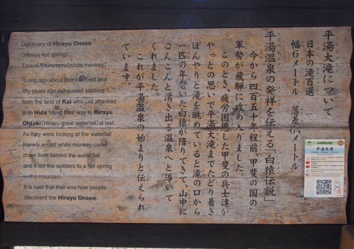 アクセス 公共交通機関利用の場合はJR高山駅に隣接する高山濃飛バスセンターから平湯・新穂高線(平湯温泉行きまたは新穂高ロープウェイ行き)で52分大滝口・キャンプ場前バス停下車,徒歩15分です(時刻表).自動車の場合は展望台そばの駐車場まで行くことができます. 観瀑のハード指数(★☆☆ ハードではありません) 駐車場からすぐにあり基本的にどなたでも観瀑ができます.