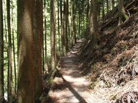 恐怖の吊り橋を渡り終えると道は急な上り坂になったが,そこを頑張って登っていく.途中には休憩用のベンチも置かれていた.
