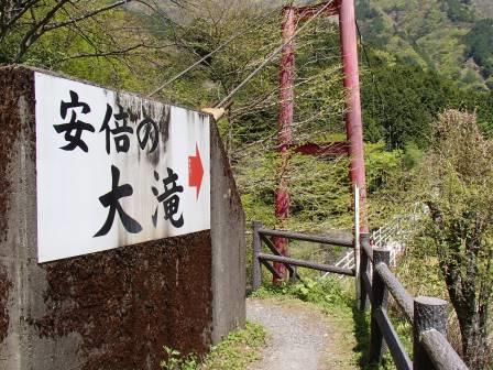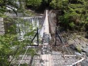 梅ヶ島温泉街よりもちょっと南よりのバス停「安倍大滝入り口」そばに滝に向かう遊歩道の入り口があり,そこから入るとすぐに大きな吊り橋を渡ることになる(第1の吊り橋).そこから少し歩いたところに,この滝を訪問した経験がある人たちの間では非常に有名な吊り橋がある(第2の吊り橋).