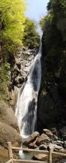 歩くこと30分,ようやく滝に到着である.安倍大滝は高さ80メートル,私が訪問した2013年5月6日は晴天が続いていた時期だったこともあり,水量的には多くはなかったものの,