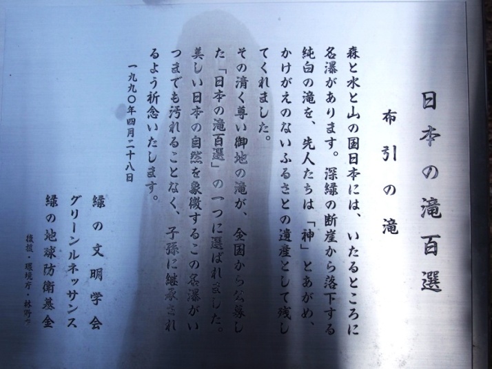 奈良県の大峰山脈に源流を持ち,熊野灘に注ぐ熊野川,その支流の1つ楊枝川にかかる滝である.この一帯は花崗岩の岩盤で構成されており,その岸壁をまるで1枚の白い布を垂らしたかのように落ちる様から布引の滝の名がある(兵庫県神戸市にも同名の滝がありこちらも100選滝である).全体として4段に渡って落ちる滝で,落差は上段から12m,3.5m,7.7m,29.1mとなっている.