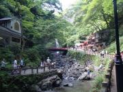 滝へは阪急箕面駅から徒歩45分ほどであるが,歩き始めて間もなくするとどんどん自然色が強くなり,滝周囲はここが大阪の中心部からさほど離れていないとは信じがたいような環境である(途中の一ノ橋付近はタイムスリップしたかのような風情).私の訪問したのは紅葉シーズンではなかったものの,6月の快晴の休日だったため滝に向かう遊歩道および滝周囲は大勢の人でにぎわっており,大阪の人が手軽に自然に触れられるスポットして人気があるのだと改めて感じた.