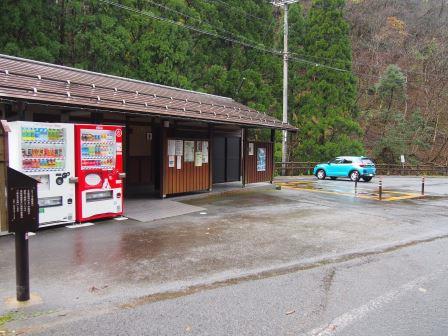 猿尾滝駐車場,トイレや自販機もあります |