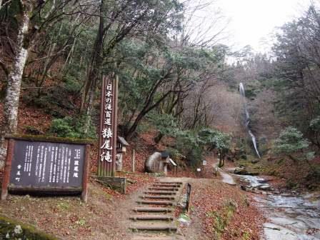 100選滝の碑とその向こうに見える猿尾滝 |