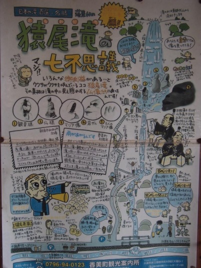 猿尾滝は山陰道(現在の国道9号線)からほど近いという利便性の良さもあって,古くから風光明媚な場所として知られており,江戸時代には当地を治めていた交代寄合の山名氏が夏にそーめん流しをしていた記録があるという.
