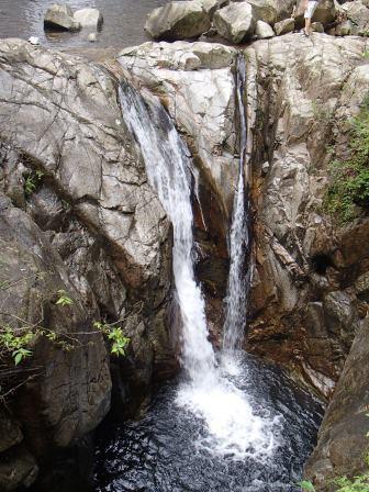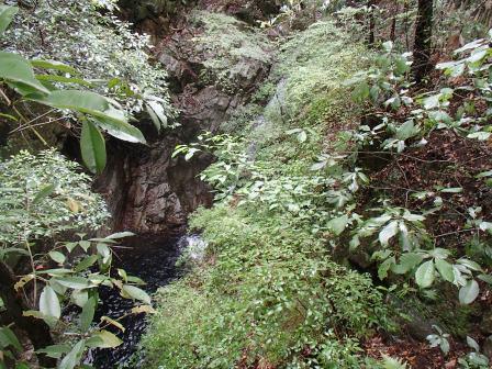 雌滝からさらに遊歩道を登っていくと,途中に鼓ヶ滝がある.高さ8メートルほどの小ぶりな滝であるが,遊歩道からはその全貌はわからず滝壺が見えるだけである.