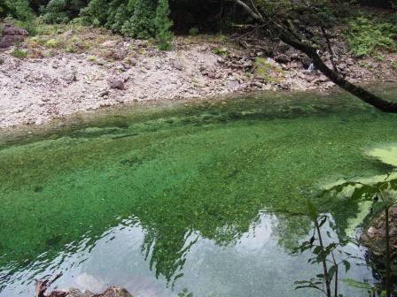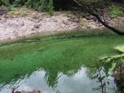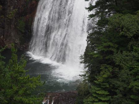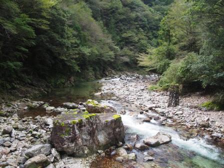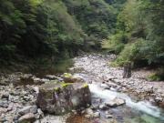 その後引き返して遊歩道の入口へ.車数台停められるスペースがあるのでそこに駐車して滝に向かう.最初はどんどん下って川沿いに出る.ここからは岩場を歩きながら上流を目指すコースだ.迷うことはないが足場が悪いのと想像以上に滑るので難儀した(今年6月に尾瀬に行った際に準備した取付タイプの滑り止めを持ってくるんだったと後悔 汗).
