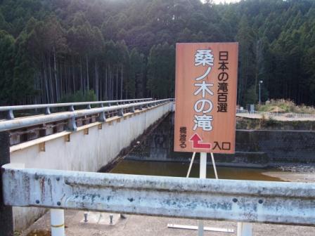 桑ノ木の滝は三重県と和歌山県の県境となっている熊野川の支流である高田川の,さらに支流の桑ノ木谷にかかっている.新宮市の市街地から国道168号線を北西に7キロほど進み,相賀橋を渡ったところを左折し県道230号線に入る.道なりに2キロほど行った先の相賀地区の相賀バス停付近に車を停め,そばにある歩行者用の細い橋(桑ノ木橋)を渡る.ここからは川沿いの遊歩道を歩くことになるが,それほどアップダウンはなくあまり疲れることはない.ただ足元が悪いところもあるのでそれなりに注意は必要だろう(ハイヒールやサンダル履きはお勧めしない).