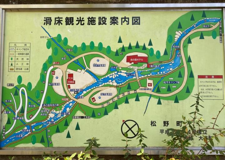 松野町の中心部から車で県道8号線を南下、目黒地区で県道270号線に入ったあとは一部対向車とのすれ違いが困難な場所もあるため慎重に進む。森の国ロッジなどの施設がある地域に観光用の駐車場があり、ここからは徒歩で滑床渓谷に入っていくことになる。