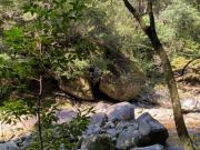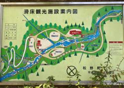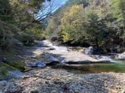 途中には三筋の滝や河鹿の滝など小規模な滝のほか、二つに割れた大きな岩の上に別な岩が乗ったことにより、鳥居のような外観となった鳥居岩などの見どころがある。 |