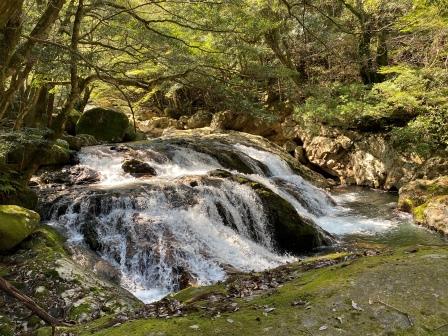 中央に四国山地を戴く四国は滝が多い地域である.その中でも愛媛県の滝といえば、日本の滝100選到達難度第1位とも言われる御来光の滝が知られているが、それとはだいぶ趣を異にするのが今回のテーマ雪輪の滝である。