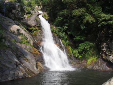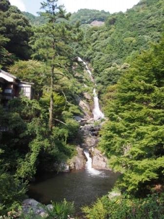 この唐津の2つの滝のうち南側の相知町にあるのが表題の見返りの滝である.松浦川の支流,伊岐佐川に架かる滝だ.落差は100メートルに達し,その高さは九州の滝では最大と言われている.直瀑ではなく,複雑な岩盤斜面を屈曲しながら落ちてくる様は独特の景観となっている.よく見ると本瀑の左側に細く優美な流れがあることから,本瀑を男滝,こちらを女滝とも呼ぶらしい.ちなみに滝の名はその景色のすばらしさから思わず見返してしまうことから名づけられたそうだ.
