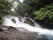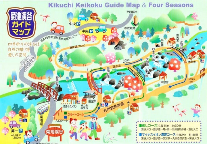 大規模なカルデラと外輪山で知られている阿蘇周辺はまた,名水の里でもある.白川水源や池山水源などが良く知られた名水スポットだが,外輪山の北西部,標高500〜800メートルの間に広がる菊池渓谷もまた素晴らしい水の郷であり,日本の名水100選にも入っている.