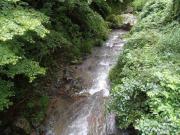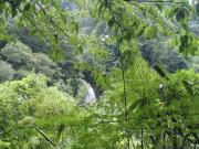 そんな五家荘地区にあるのが栴檀轟の滝である.球磨川水系の上流笹越川にかかる滝だ.名称に付く轟とは現地で滝を意味する言葉で「とどろ」と読み,かつてここに栴檀の大木があったことからこの名が付いたらしい.轟自身が滝の意なので,栴檀滝の滝ということになるだろうか.ちなみに付近には梅ノ木轟の滝というのもある.この地域の地形は古生代後半のベルム紀(二畳紀)に形成された石灰岩やチャートで非常に固い.栴檀轟の滝はこの固い滝崖から80メートルの落差を落ちる直瀑である.