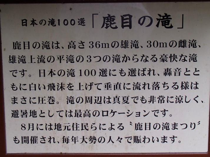 鹿目の滝は熊本県最大の河川である球磨川の支流,鹿目川に架かる滝だ.一般に鹿目の滝という場合,上流にある平滝,下流にある雄滝,雌滝の3つを総称して呼ばれることが多い.