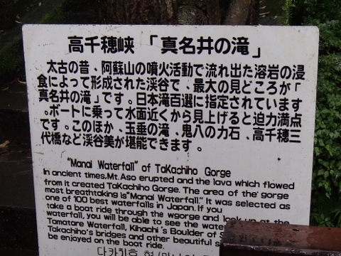 真名井の滝の案内板 |