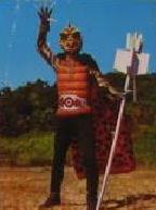 | そんなサンダーマスク,魔王デカンダが送り込む魔獣(動物と機械を合体させたモンスター)と毎週死闘を繰り広げる.当初出てきた魔王デカンダは傀儡にすぎず,実はそれを操る大魔王ベムキングが存在したという,ドラクエVばりの展開を見せるのだが,それに伴い魔王デカンダの風格がどんどん低下していったのが情けなかった(まあ最初から大した風格もないのだが 笑). |