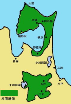 前述のように斗南藩は下北半島のほか,青森と岩手の県境付近にも飛び地の領地を持っていた.今の行政区域に従えば,青森県の三戸町,田子町,五戸町,新郷村そして十和田市の一部,岩手県二戸市の一部となる.この地域への入植は五戸が中心だったようだ(斗南藩発足当初は五戸に藩庁が置かれたらしい).新選組の副長助勤だった斎藤一も他の藩士たちと共に,この五戸に入植している.