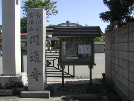 | 田名部地区の斗南藩史跡として円通寺および徳玄寺ははずせないポイントである.円通寺は恐山の本坊として知られるお寺であるが,斗南藩当時は藩庁が置かれ,藩校の「日新館」もここに開かれた(すぐに学校を開くあたりに,会津藩の教育熱心さが窺える).ただ円通寺は禅宗の寺で戒律が厳しく,肉食や妻帯が禁じられていたことから,藩主松平容大らの生活の場としては,隣接する徳玄寺が使われたようである(徳玄寺は浄土宗のため,戒律は緩やからしい). |