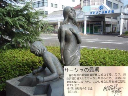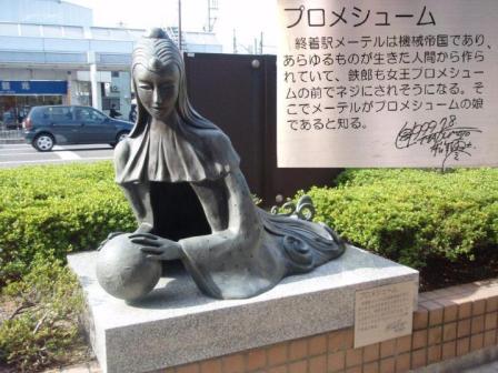 終着駅メーテルは機械帝国であり、あらゆるものが生きた人間から作られていて、鉄郎も女王プロメシュームの前でネジにされそうになる。そこでメーテルがプロメシュームの娘であると知る。 |