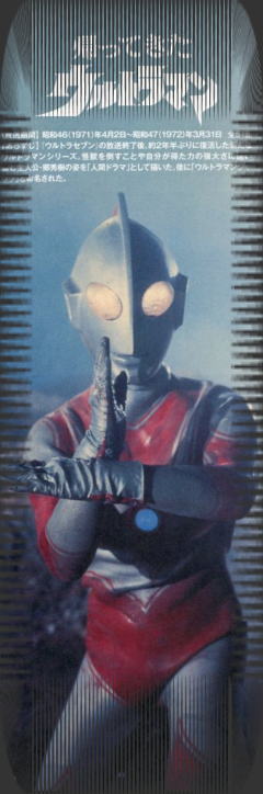 | ウルトラセブンの終了後,2年半ぶりに円谷プロによって制作されたのが帰ってきたウルトラマンである.昭和46年4月2日から昭和47年3月31日までの全51話で放送された.当時は公害問題等が社会を騒がしていたころで,こうした人間の無秩序な開発によって眠っていた怪獣たちが目を覚まして姿を現す… という設定で始まる.東映の仮面ライダーとともに,いわゆる第2次怪獣ブームの牽引役となった作品であり,ヒーローとしてのウルトラマンと人間のチーム(MAT)が怪獣に立ち向かうこという基本コンセプトはそれまでの作品と変わりはない.ただ,本作においては主人公であるウルトラマン自身の成長もテーマになっており,初代のウルトラマンのような完璧なヒーローというわけではない.ちなみに帰ってきた〜とはなっているが,別に最初のウルトラマンが帰ってきたわけではない. |