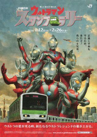 そんな人気イベントであるから,その第2弾が行われることは容易に想像できたのだが,2015年の末に実際にJR東日本の駅構内に第2弾開催のポスターが登場した.タイトルはズバリ,帰って来たぞ我らの!ウルトラマンスタンプラリー,「!」の付くところが変わってるじゃないかというツッコミは置いといて,今回も首都圏のJR各駅にスタンプ設置という基本パターンは変わらないが,新たに東京モノレールの駅が追加になった.スタンプの数は昨年の64から一つ増えて65,取り上げられる作品は,昨年はウルトラQから帰って来たウルトラマンまでの4作品だったのが,Qが外れて代わりにAとタロウが加わった5作品である.
