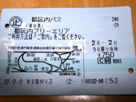 こんな時に役立つのが都区内パスで,これ1枚で東京都区内のJR東日本全駅に乗り降り自由という優れものだ(750円,スタンプラリーの案内書にもこの切符を使うと便利と書かれている).ただ,スタンプのある駅すべてを網羅しているわけではなく,常磐線の松戸以遠の駅はこの切符のエリア外である.現実には都区内パス外のスタンプ駅が9駅あり,この部分はSUICAなどのIC乗車券を使うか,土日祝日限定ではあるが,このエリアも含んでいる休日おでかけパス(2670円)を使うことになる.
