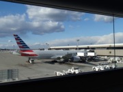 眠い目をこすりながら飛行機を降りてイミグレーションに向かう.ここでアメリカ入国で定番の両手の指紋,写真撮影を経て無事に通過できた.その先で今回のツアーに参加する他の面々と顔合わせとなる.添乗員さん他,私とKを含めて総勢8名なのだが… 女子率が高い!! なんと男は私と添乗員さんのほか,1名だけだった(おまけに私とK以外はすべて一人参加!). |