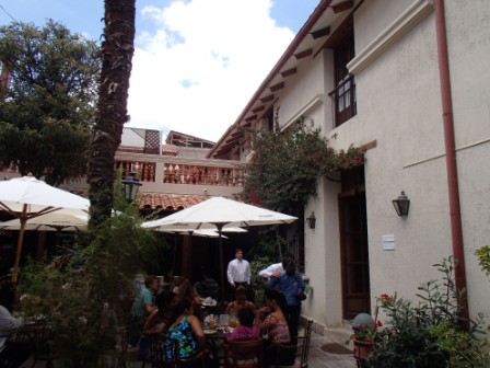 9時50分にホテルのロビーへ,ここでチェックイン時にもらったウェルカムドリンク券を利用してコーヒーをもらう.とはいえ出発時間が迫っていたためゆっくり飲む暇はなく,あわただしく流し込む感じだった.10時に予定通りバスは出発,車中ではこれから向かうアンデスの高地帯での注意事項の説明がある.高地帯は空気が薄いことと乾燥していることから,なるべくゆっくりと深い呼吸をすること,水分をたくさん取ることが言われていた(高山病対策である).