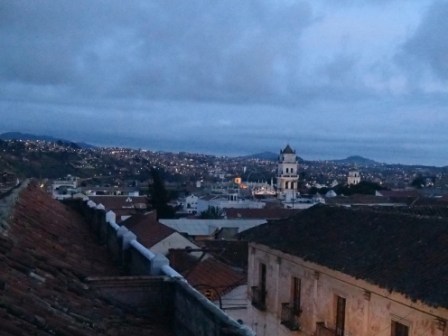 市内を一望したのちバスは市街地に入っていく.この街も石畳の道路で道が狭く,ゴミゴミしている.ガイドさんによると,狭いのはここは標高が高く寒いため,なるべくみんなが寄せ集まって生活しているからなのだそうだ.