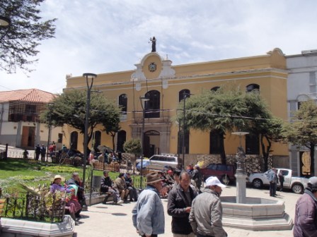 バスを降りてまずは中央市場へ,ボリビアでも大都市に行くと今風のショッピングモールもあるらしいが,地方都市ではまだまだ昔風の市場がメイン,ここも小さなお店が所狭しとひしめいていた.市場内でトイレを借りて,街の中心11月10日広場へ.ここもなにか由来があったはずだが忘れてしまった(笑).