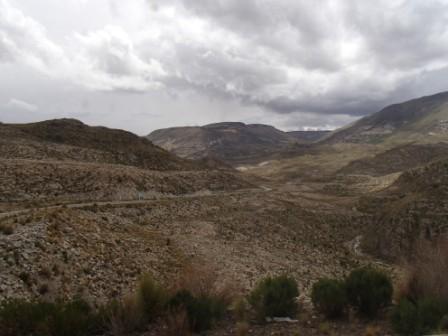 赤茶けた山肌,真ん中の尖った山がセロ・リコ