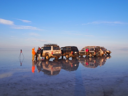 2月10日,ボリビア旅行記第5日目,念願のウユニ塩湖に到着して最初の夜明け前である.まずは早朝4時から星空観察&朝日鑑賞ツアーに出発だ.早起きしてさあ行こうと思ったが,ウチのKの調子が悪そう,ここまでの疲れが出たのだろうか.まだまだ先は長いこともあり「無理しなくていいよ」とおいていくことにした.